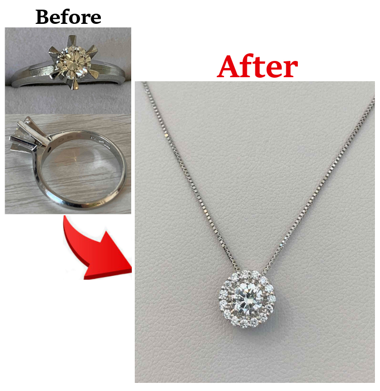 おばあ様の形見をリフォームして、お孫さんのウェデングネックレスへ。