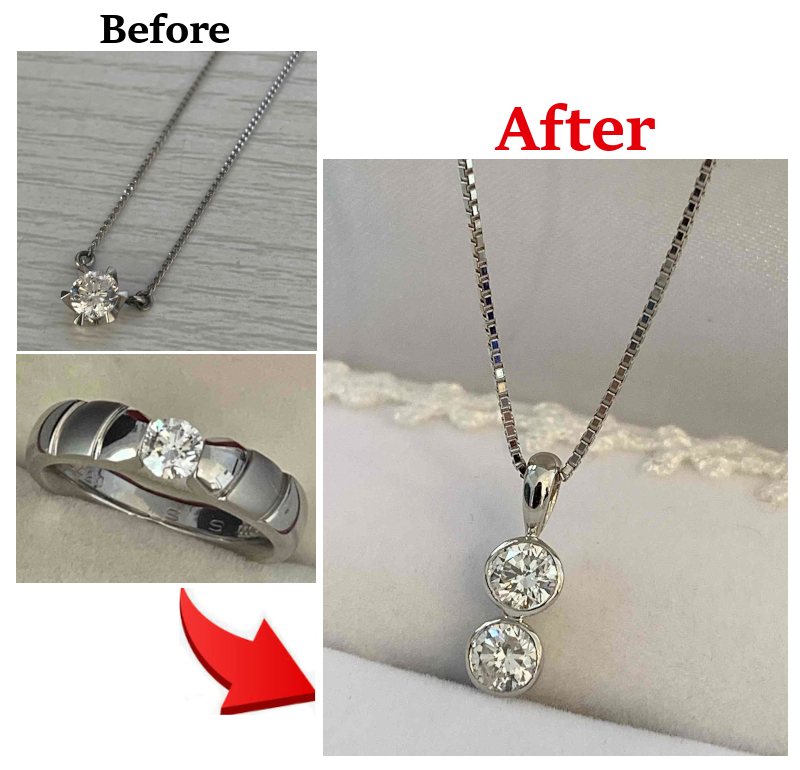 母から受け継いだ2つのダイヤを1本のネックレスに。