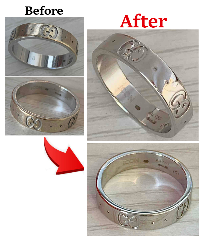 新品仕上げ後にロジウム加工を施し、明るく上品な白さが蘇りました。
