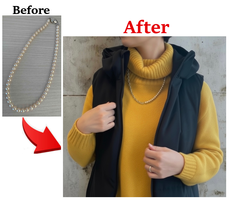 ボリュームチェーンを追加して、日常使えるカジュアルパールへリフォーム