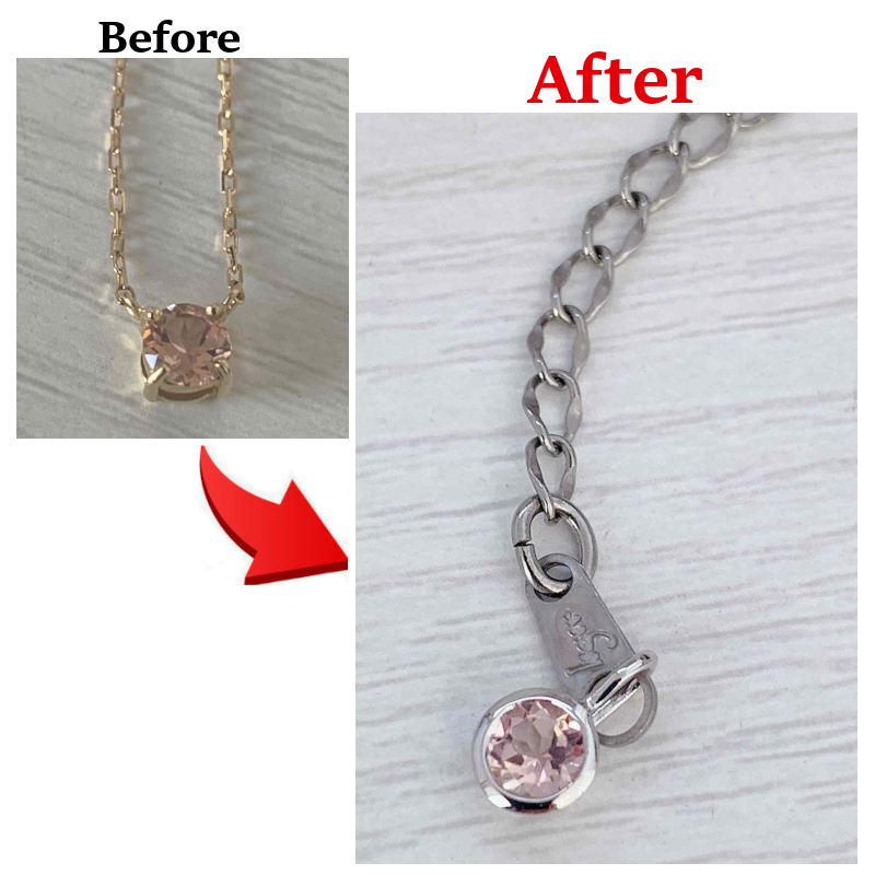 桜色のピンクトパーズ。 金属アレルギーでも、素材を変えて身につけられるかたちに。 この春、やっと一緒にお出かけできる一本に。