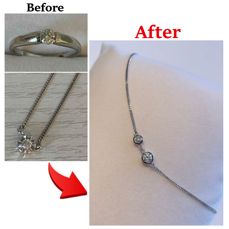 二つを一つに。 それぞれの想いを繋ぐ、ダイヤのブレスレットリフォーム。 日常に寄り添う、軽やかな輝きへ。