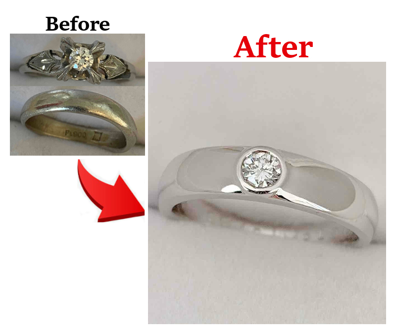 受け継いだダイヤリングと結婚指輪を溶かし、新たな一本へリフォーム。