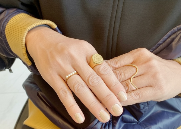 ボリュームのあるリングを多くお持ちのお客様の装いにも自然に馴染み、重ねづけも楽しめます。