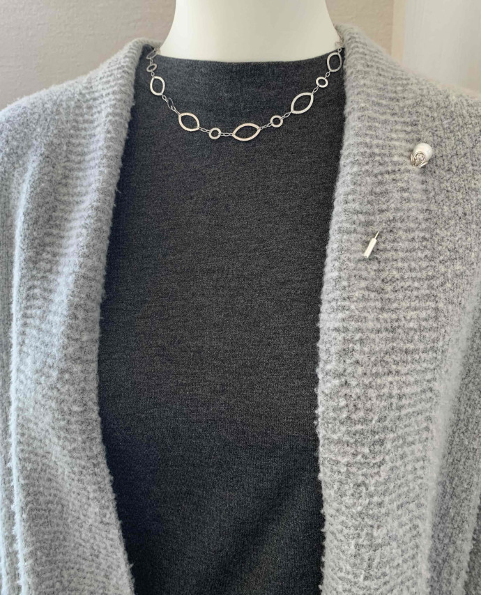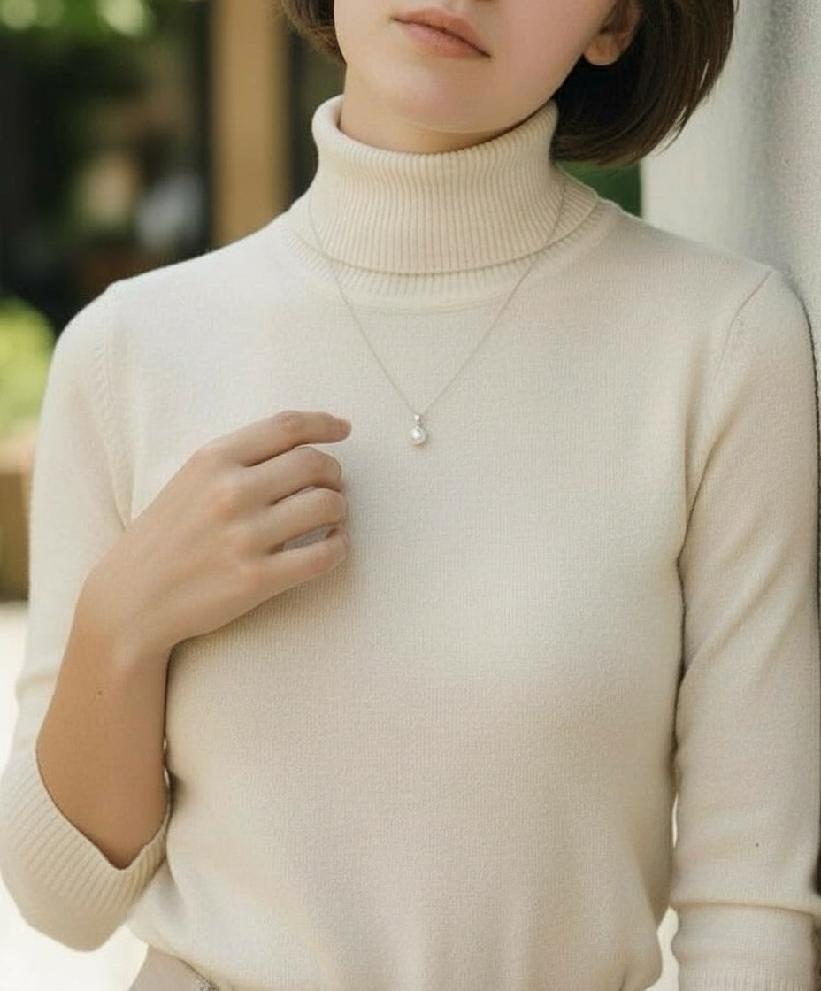 長さ調整もでき、ハイネックのアクセントにもぴったり。