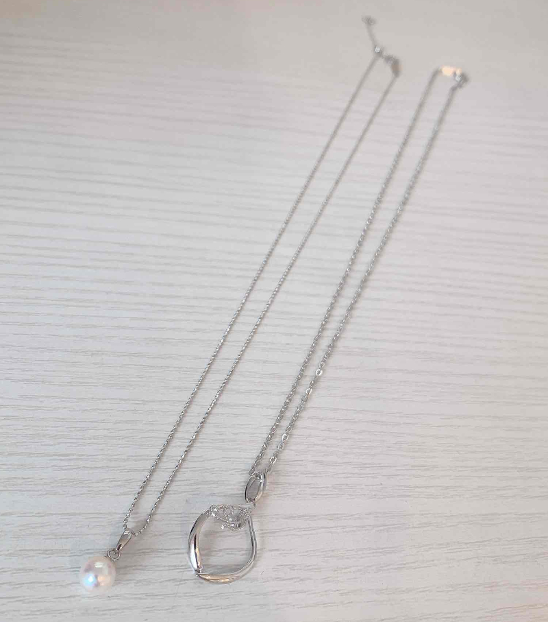 一連のパールネックレスに地金チェーンをプラスし、日常使いしやすい軽やかなデザインへリフォームいたしました。