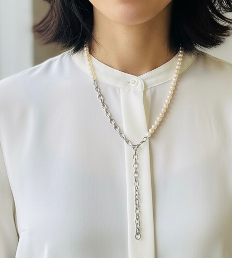 空間のあるチェーンがミックスされることで抜け感が生まれ、普段使いしやすくなります。