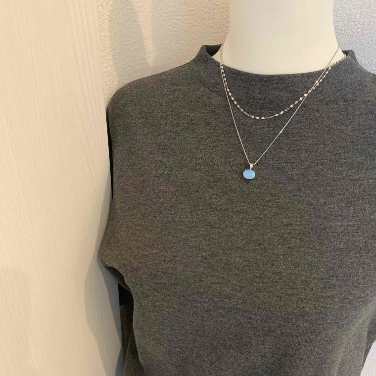 大きな宝石が映える少し長めのチェーンに通して胸元のアクセントに。