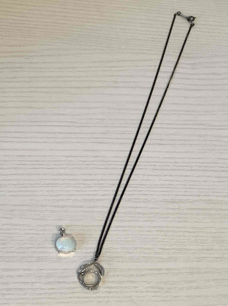 オパールのサイドにダイヤがセットされた元枠を活用、補強し、通し替えのできるペンダントへ。