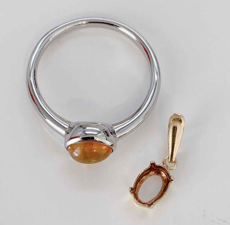 オパールは横向きにセッティングし、爪のない覆輪枠。