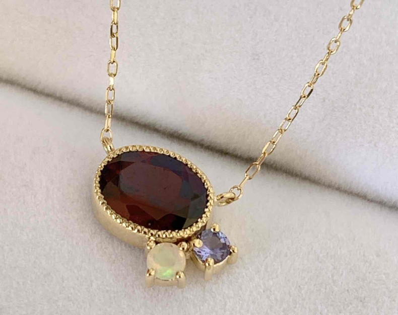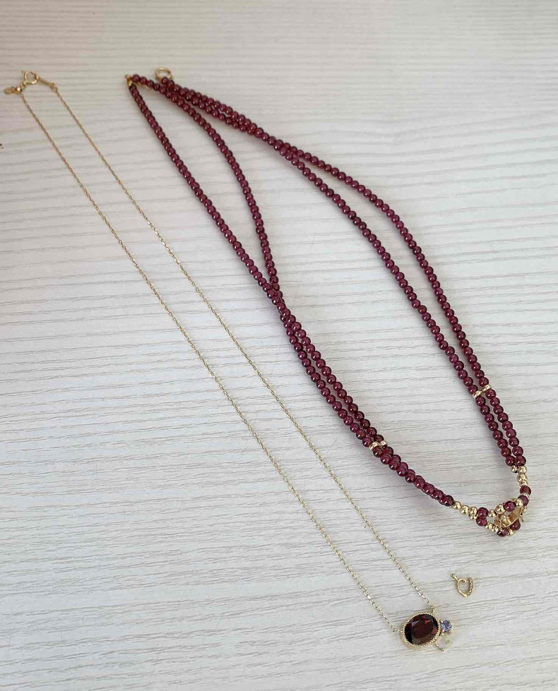 お母様の形見であるガーネットネックレスの中石を、ペンダントネックレスへリフォームさせていただきました。