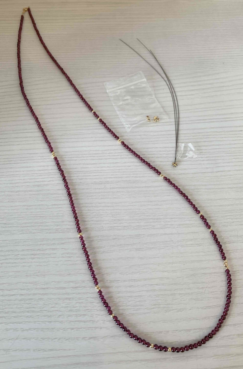 その際に残ったガーネットビーズとゴールドビーズを活かし、