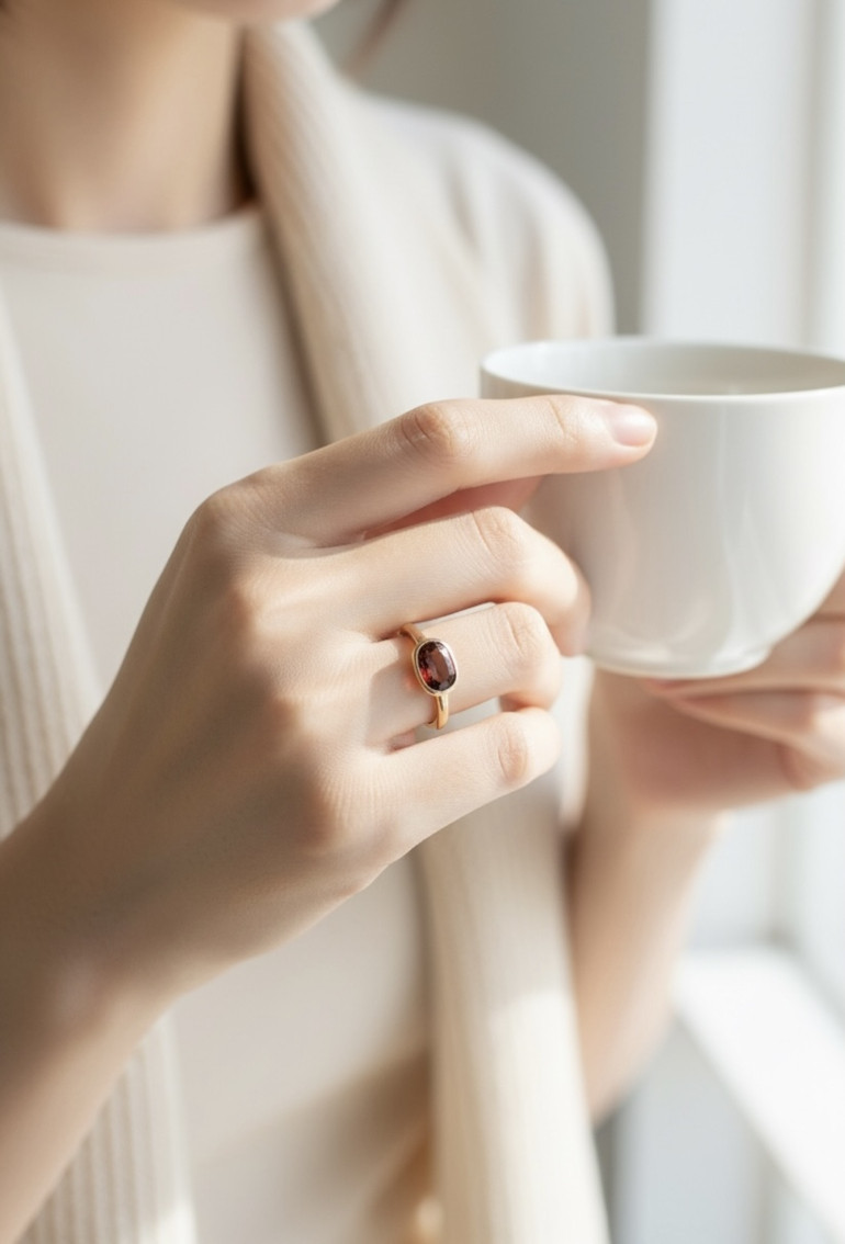 赤いガーネットの深みある色合いに、