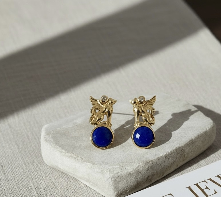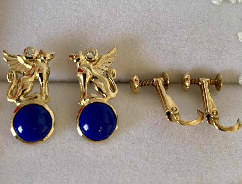 今回お持ちいただいたのは、翼を持つライオンの姿をしたグリフォンモチーフのイヤリング。