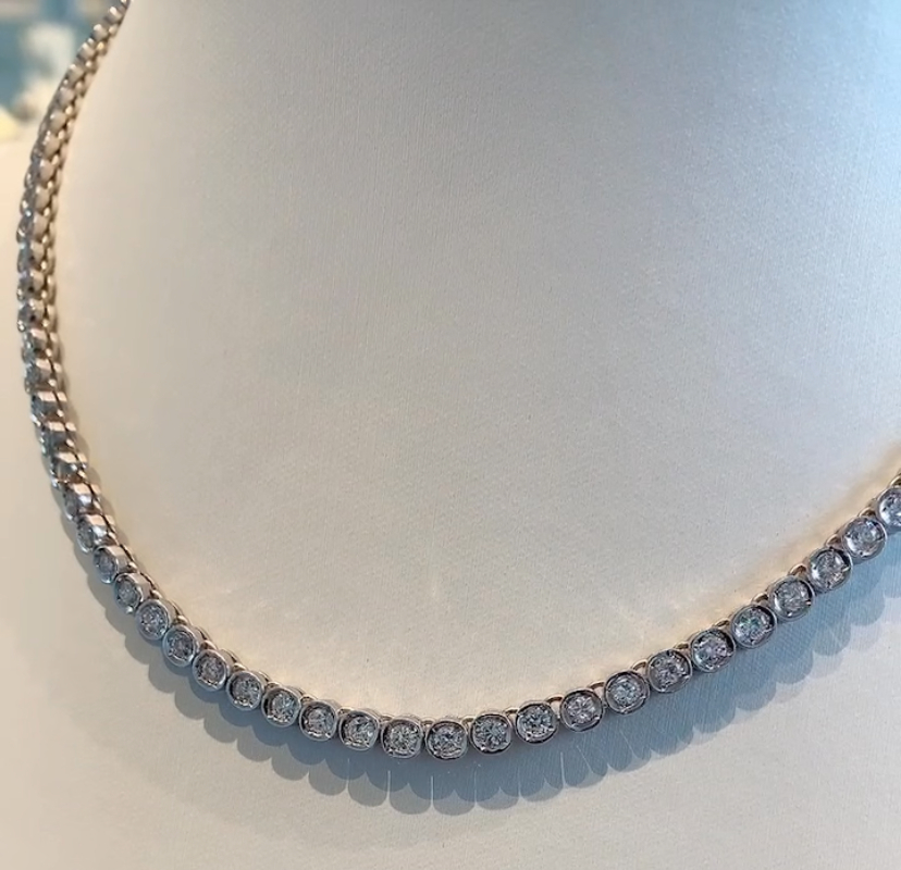 テニスネックレスとは、ネックレス全体に同じ大きさのダイヤモンドが一列に連なったデザインのこと。