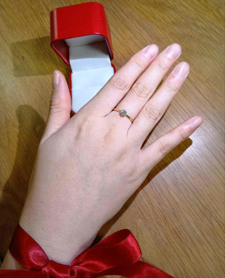 大きな爪と高さのある婚約指輪。
