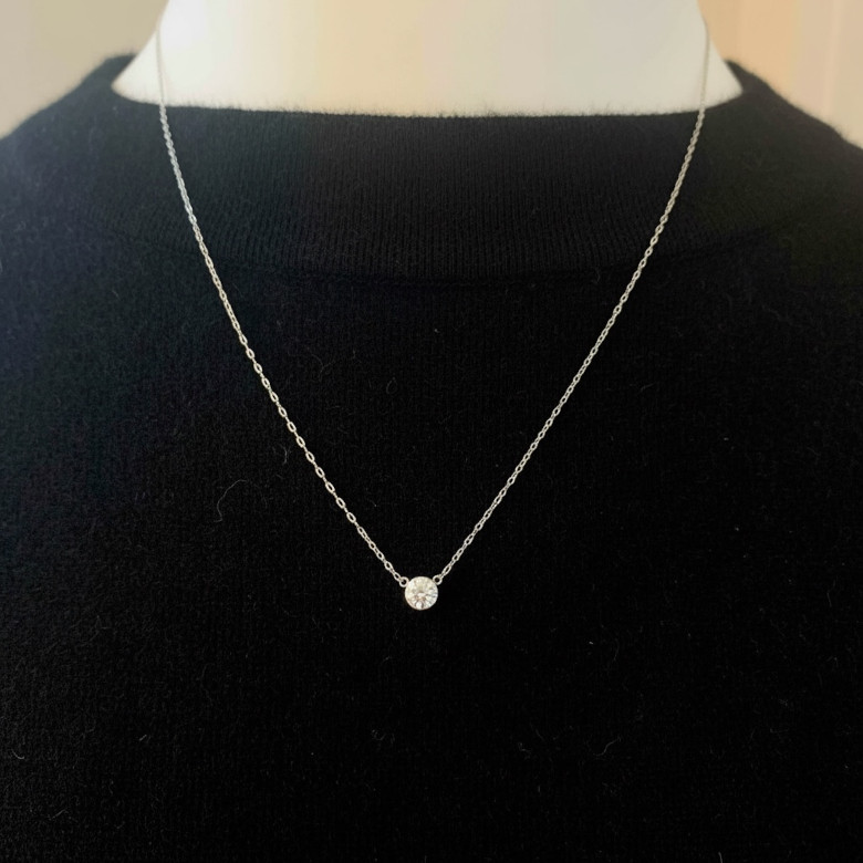 同じ覆輪留めでも、バチカンの有無によって、首元での見え方や印象は大きく変わります。