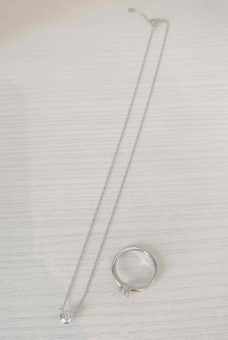 若い頃にお母さまから贈られた立爪ダイヤネックレスと、
