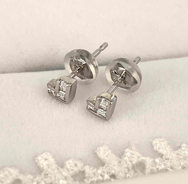 分離した角ダイヤ部分も活用し、ピアスに仕立てさせていただきました。