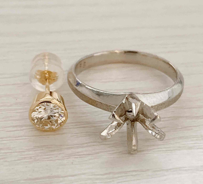 元のイヤリングと同じ爪なしのベゼルセッティングですが、プラチナ地金の縁取りをギリギリにし、ダイヤを強調。イヤリングの時より、スマートでスッキリした印象に。